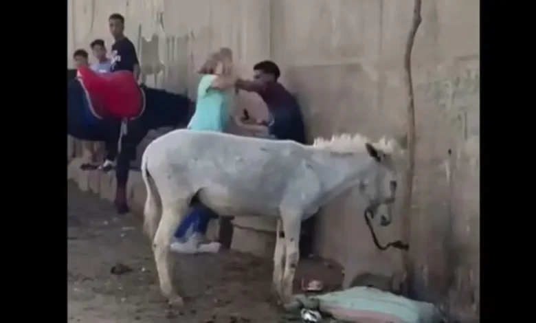 في حدث غير مألوف، تداول ناشطون فيديو لسائحة أجنبية هاجمت شابًا يعمل سائسًا بالقرب من منطقة أبو الهول الأثرية، بعد مشاهدته يضرب بكرباج حمارا بعنف.